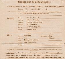 In den vierziger Jahren erstellte Kopie eines Taufeintrages.